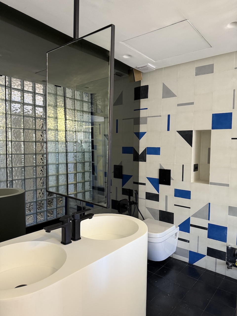 Réhabilitation et restructuration complète de cet appartement de 70 m2 y compris le balcon extérieur. Nous avons créé de nouveaux espaces adaptés aux besoins de notre client, dans les murs de la construction initiale. Le client souhaitait moderniser et mettre au goût du jour son appartement pour en faire une suite similaire à celle d’un hôtel. Notre équipe a opté pour une fluidité des espaces et pour une radicalité dans les choix des matériaux et des couleurs.